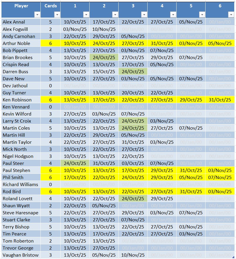 NEW – Below the leaderbord there is now a Record of Cards Submitted. See image below. Yellow highlighted indicates 6 cards submitted and therfore complete. See Here: