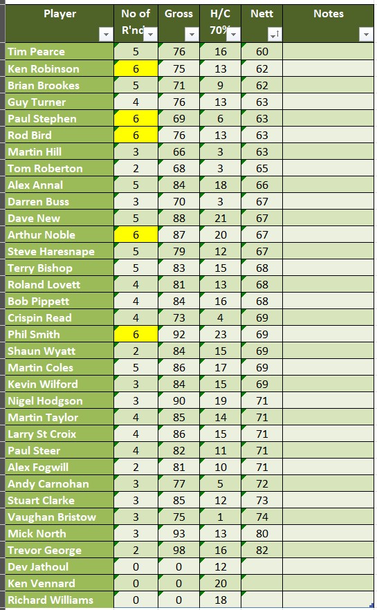 Temp Greens in November – We obviously need to see the extent of the disruption we will face in November. However we are introducing a rule that if a hole has a temp green, it can’t count towards your eclectic score. We will be monitoring the situation and update you as required.